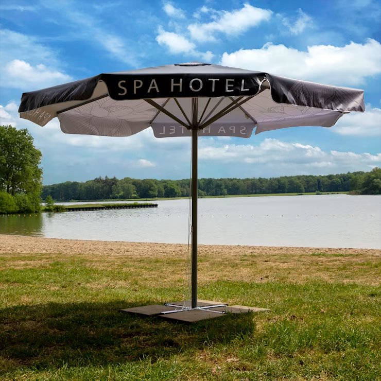 Met een bedrukte parasol sta jij altijd in het licht.