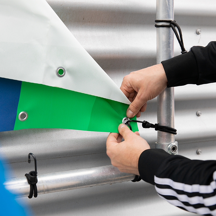 Het Spandoekframe biedt de perfecte basis voor het professioneel monteren van jouw spandoek, banner of doek. Het frame is gemaakt van aluminium, waardoor het sterk én licht is; bovendien geschikt voor bevestiging aan muur, damwandplaat of andere ondergronden. Je kunt kiezen of je het frame los bestelt of als complete combinatie mét spandoek. Bij montage worden spanners gebruikt om het doek strak in het frame te spannen, waardoor het doek ook bij wind netjes op zijn plaats blijft.