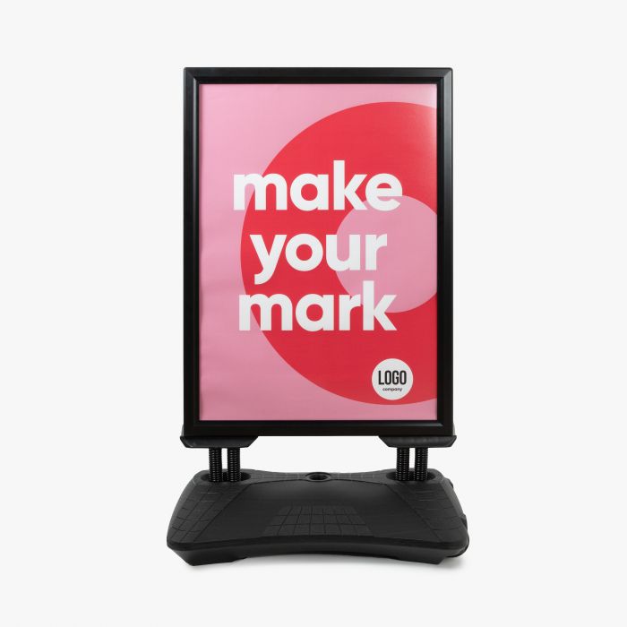Geef je winkel, horeca, evenement of promotie een stabiele, professionele en opvallende presentatie. Bestel vandaag nog jouw Premium stoepbord met watertank en zorg dat jouw promotie onmiskenbaar zichtbaar is!